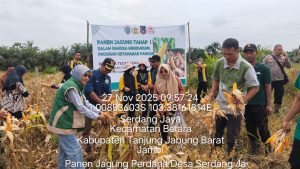 Serdang jaya, kepala Desa Serdang Jaya bersama BKTM, pendamping Desa, dan beberapa lembaga Desa lainya melaksanakan panen jagung dalam program ketahanan pangan nasional. Kamis/27/11/2025